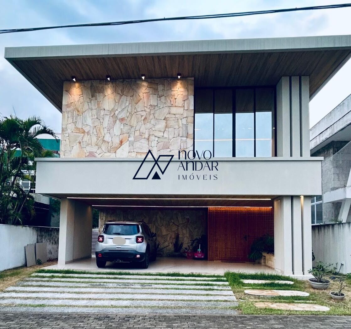 CASA DUPLEX DE ALTO PADRÃO com 355m² de área construída com arquitetura moderna e sofisticada, na piso inferior possui pé direito alto com ambientes amplos e integrados ligando sala de jantar e estar ao espaço gourmet climatizado com churrasqueira e piscina ideal para a interação entre familía e amigos, com cozinha americana, dispensa e dependência completa. No piso superior temos 4 suítes, sendo uma master com closet, escitorio, varanda e banheiro amplo e mais 2 suítes com closet.