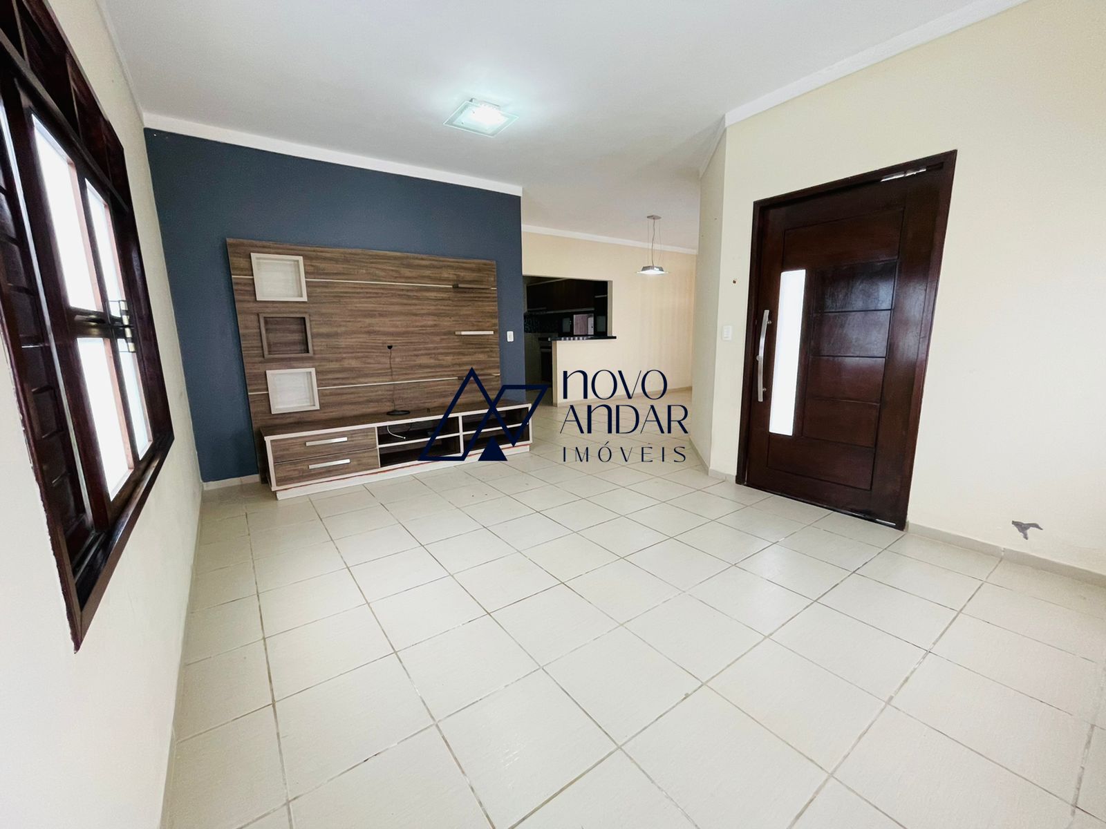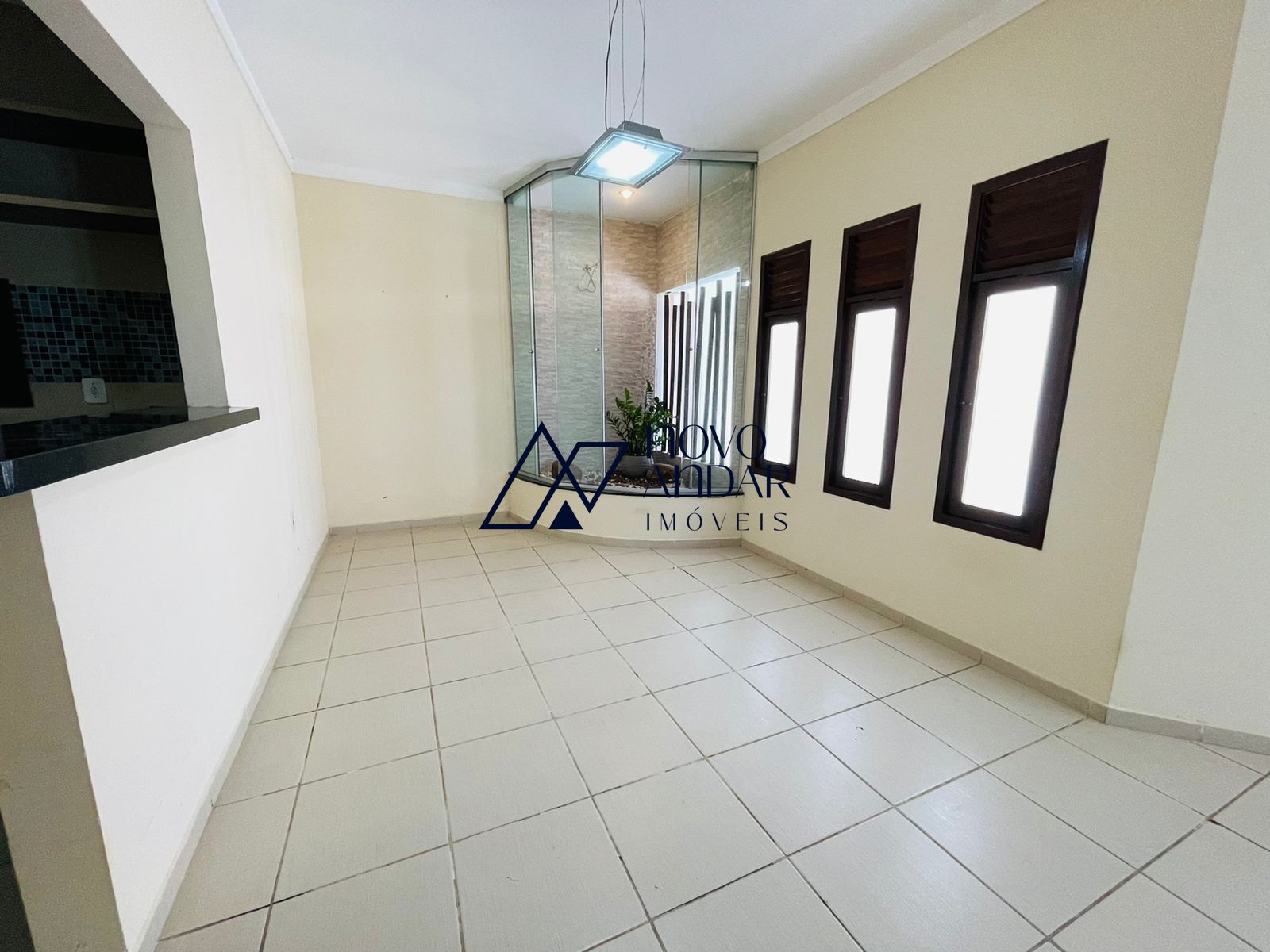 Conheça uma casa de 130 metros, sendo três quartos, sendo um suíte, sala para dois ambientes, cozinha, área de serviço, duas vagas de garagem, jardim.
