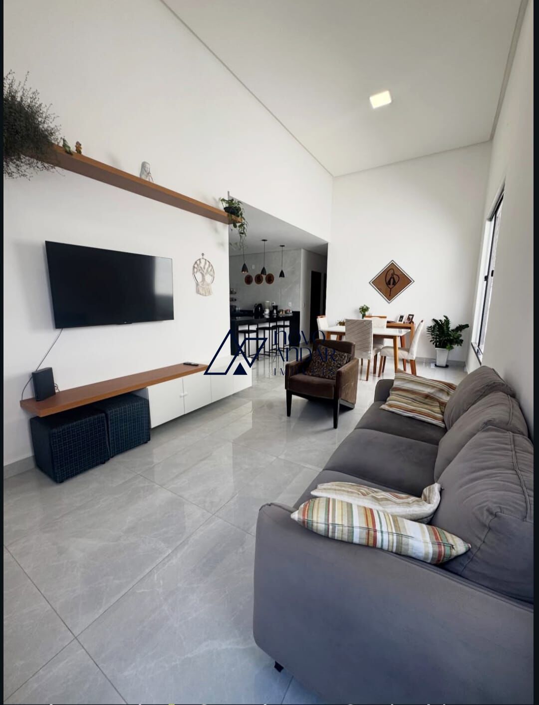 CASA RÉCEM CONSTRUÍDA com 128 m² de área construída e 200 m² de área toral, com fino acabamento e pronta para morar! Composta de 3 quartos, sendo 1 suíte ampla, sala de estar e jantar, pé direito elevado, cozinha com bancada e móveis planejados. espaço goumert com planejados e churrasqueira.