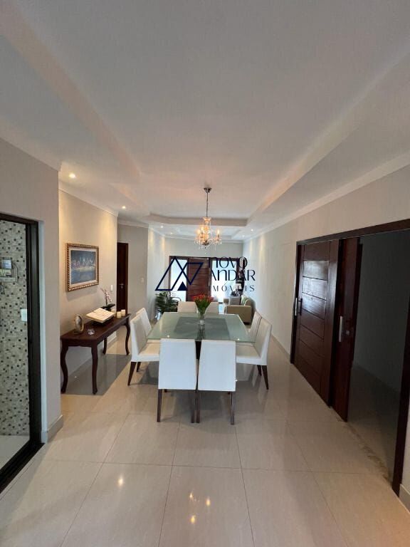 A casa possui sala para dois ambientes, sala de TV, escritório, lavabo, duas semi suites, uma suíte com closet, espaço gourmet com churrasqueira e piscina, depósito, banheiro auxiliar, cozinha, varanda, garagem para dois carros cobertos.